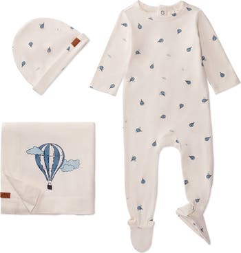 Cozy comfort meets cuteness overload. This adorable 3-piece footie set comes in a feel-good blend combining 3 premium fabrics: silky-soft rayon, breathable cotton, and stretchy, shape-keeping spandex. Our fun balloon print ties all 3 pieces together. Perfect baby shower gift.