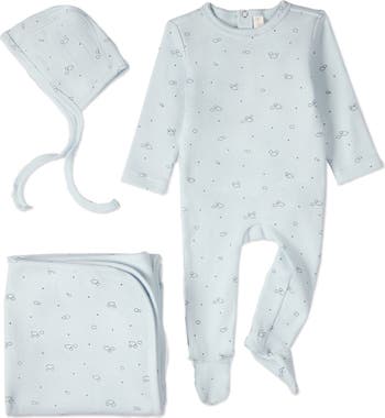 Treat your cherub to cloud-like comfort with this charming 3-piece set. It comes in our premium blend: soft, breathable cotton with a smidge of shape-keeping spandex. The stretchy mini-ribbed knit gives your tot extra room to wiggle. And the "Clouds of Happiness" print adds a touch of breezy charm.