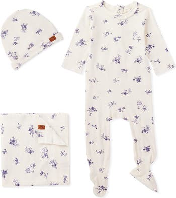 She'll feel cute and comfy all over in this charming 3-piece set. The picot-trimmed footie boasts cozy long sleeves and back snaps for easy on/off. Plus, it comes with a matching beanie and blanket for comfort from top to toe. All 3 pieces feature our rich rayon blend for softness next to her skin.