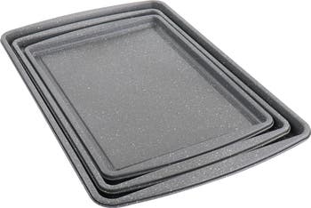 Make all your favorite cookies and entertain all your guests. Perfect for parties or any other type of events with the Oster 3 piece carbon steel cookie sheet. Comes with 3 sheets for easily preparing multiple batches to have enough for everyone. Comes with one 17" cookie sheet, one 15" cookie sheet, and one 13" cookie sheet.