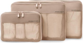Keep it all organized with these three mesh packing cubes that compress to add more room in your carry-on bag and are transparent so you can quickly find your items.