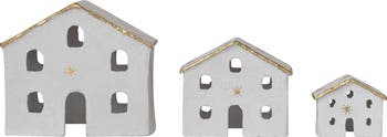 3-Piece Charming Paper Mache Houses with Gold Foil Stars and Trim, White