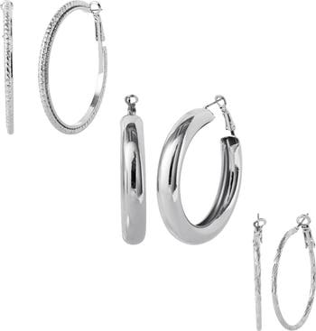 3-Piece Textured Silver-Tone Hoop Earring Set