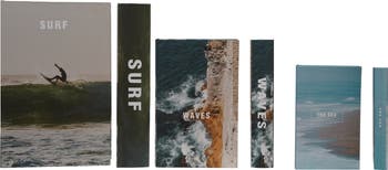 - A charming set of 3 beach-themed book storage boxes featuring vibrant "surf," "waves," and "the sea" designs