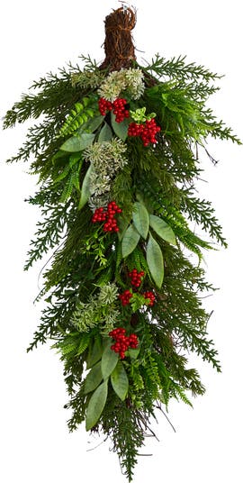 Greet guests with a bit of festive cheer. Display your holiday-inspired Christmas artificial swag in any space in need of some freshness. Variegated green evergreens are accented by berries. Hang in any room in need of some Christmas colors. With a height of 30in. house in any area. Gift to a friend that loves the holidays. Artificial swags are manufactured using synthetic materials, such as polyester material or plastic, and are well designed and constructed to be life-like in appearance. This item will need to be re-shaped when removed from the secure box to allow it to reach its fullest size. Your artificial plant will look beautiful for years to come; simply wipe clean with a soft dry cloth when needed.
