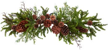 Are you looking for something different? Something that says "Autumn Fresh", but not something that's typical? Then look no further than this striking 30" Green and Pine Swag. Brown, bumpy faux pinecones come intertwined with pine greenery to create a crisp-looking decoration that will freshen up any room. Also makes the perfect gift for that person who has everything.