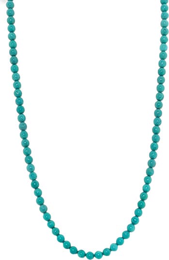 This Super Long Necklace is 30 inches long with 6MM Turquoise Colored Balls, secured with a lobster claw clasp. The nickel and lead free necklace will make a statement for any occasion. Bring timeless beauty to your wardrobe with this super long necklace.