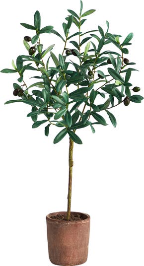 Walk through the Italian countryside with this fine and delicate Olive Artificial Tree. Featuring a thin brown trunk that splits into stems, this fake tree elegantly displays faux leaves and is accented throughout with fake olives so realistic that you'll want to eat them. Standing at 31" from a planter (included in height), curate in compact and tight spaces like apartments, awkward corners, and bathrooms. This best-seller is perfect for minimalist, mid-century modern, boho and homes that need a delicate touch. Silk trees are manufactured using synthetic materials, such as polyester material or plastic, and are well designed and constructed to be life-like in appearance. This item will need to be re-shaped when removed from the secure box to allow it to reach its fullest size. Your artificial plant will look beautiful for years to come; simply wipe clean with a soft dry cloth when needed.