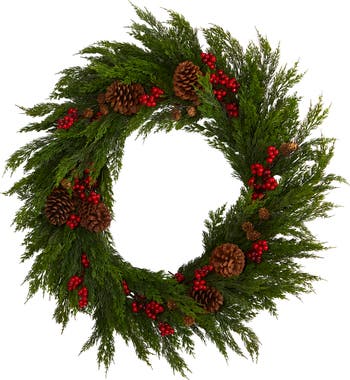 32-in Cypress with Berries and Pine Cones Artificial Wreath