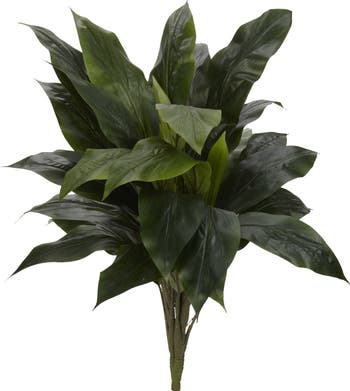 Several small stems rise to reveal rich green leaves that curve outward with this artificial green cordyline plant. Lifelike in appearance, the dark foliage of this plant can add a depth of color to any room's arrangement, especially in a minimalist, white theme living room. Place this plant in a silver vase and sit atop a small table next to a love seat or couch for a polished look. Arrives with three individual plants.