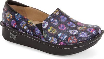 Alegria makes comfortable shoes that invoke happiness. Vivid prints on supple leathers are the start, but its patented footbed is where the magic happens. Soft polyurethane, cork and memory foam are ergonomically engineered to fit your feet's natural contours. Solid arch and heel support help relieve stress on the legs, hips and back—especially good for those who stand all day.