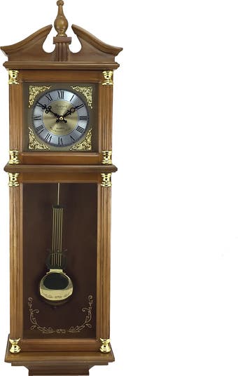 34.5in Chiming Pendulum Wall Clock Harvest Oak