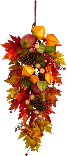 When you think of the perfect autumn landscape, the picturesque fall foliage is top of mind. Now you can craft your own spectacular scenery with this Maple Leaf artificial teardrop. Inspired by the North American forests, this wreath comes with naturally occurring details and vibrant shades of variegated perfectly, imperfect leaves mimicking the fall foliage and accented by pinecones and berries. Standing at 35in., showcase mother nature's beauty during the Thanksgiving dinner table, Halloween or cozy nights. Perfect for a family fun DIY fall design session. Artificial swags are manufactured using synthetic materials, such as polyester material or plastic, and are well designed and constructed to be life-like in appearance. This item will need to be re-shaped when removed from the secure box to allow it to reach its fullest size. Your artificial plant will look beautiful for years to come; simply wipe clean with a soft dry cloth when needed.