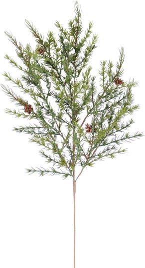 Bring lifelike greenery into your seasonal decor with natural-looking evergreen branches with pinecones. Our artificial pine stems are durable and maintenance-free, offering timeless and easy elegance for years to come. Set of 4.