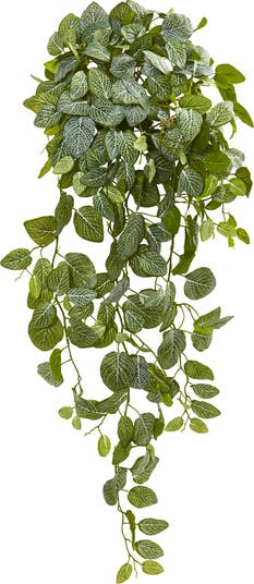 Add an elegant, chic look effortlessly to any room or space with this real to the touch fittonia hanging artificial plant. Featuring several green leaves that drape downward like a waterfall, this ornament also comes in a set of two to let you create a , green display. Hang these plants over your wooden bar table to beautifully highlight this space.