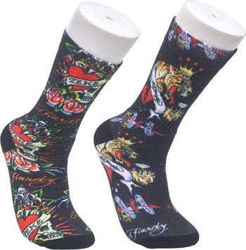Stand out from the crowd with the Ed Hardy Men’s 360 Digital Print Crew Socks. Featuring edgy tattoo-style graphics with all-over wraparound prints, these socks combine bold fashion with full-cushion comfort for a powerful step every time.