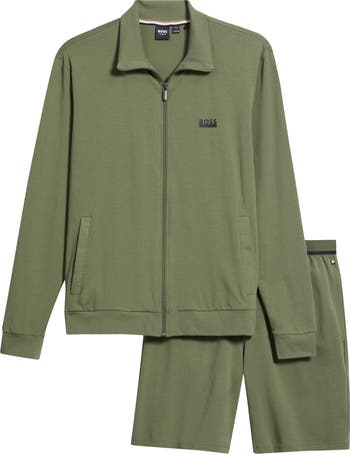 Stretch-enhanced cotton jersey brings sporty comfort to a track jacket and matching shorts designed to take you from active days to lazy nights without missing a beat. Wear them as a set or pair them with other casual favorites to expand your wearing options whether you're playing or relaxing.