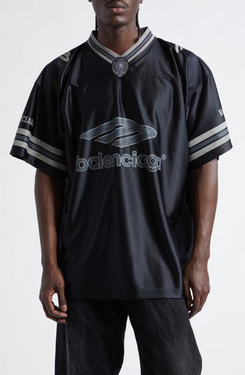 Balenciaga channels American football team uniforms in a jersey marked with 3B Sports Icons angling forward on the chest and back a roomy fit that allows for easy play on and off the field. Worn-out graphics and a shiny finish bring old-school detailing to the game-winning look.