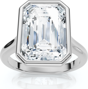 3Ct Emerald Cut Bezel Solitaire Diamond Engagement Ring 14k Gold or Pt Lab Grown