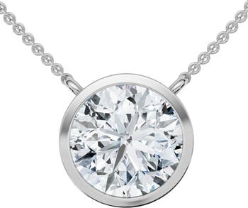 Bliss Diamond 3Ct Solitaire Beezel Diamond Pendant Necklace 18" 14k Gold Lab Grown, Main, color, 14K White Gold