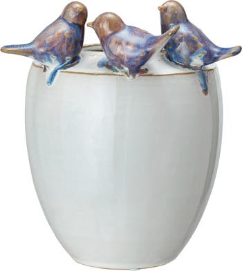 - A whimsical delight, this stoneware planter/vase features charming 3D birds perched on the rim, finished with a reactive glaze in multi-color