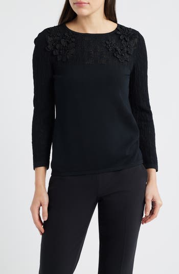 3D Floral Appliqué Yoke Sweater