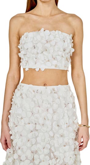 3D Floral Crop Bandeau Top