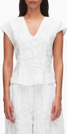 3.1 Phillip Lim 3D Floral Embroidered Top, Main, color, White