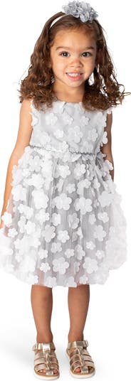Three-dimensional blooms jump out at you as baby passes by in this pretty dress boasting a comfy cotton lining.
