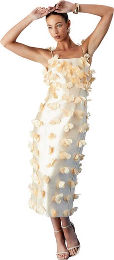 Make a breathtaking entrance at your next special occasion in this show-stopping Coast midi dress. The exquisite 3D floral embellishments create a truly unique visual and tactile experience, whilst the sleek satin fabric provides a sumptuous foundation that reflects light magnificently. For cooler evenings, drape a lightweight pashmina over your shoulders.