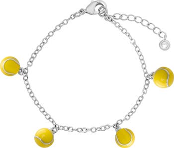Tennis-ball charms dangle from this delicate bracelet perfect for budding sports enthusiasts and packaged for gifting.