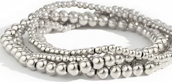 Elevate your jewelry collection with this gold bead bracelet stack. Featuring two 3mm and two 5mm gold-filled bead bracelets, this set offers versatility and elegance. The elastic stretch fit ensures comfort, allowing you to wear them individually for a subtle touch or stacked together for a bolder statement. Perfect for any occasion, these bracelets add a timeless charm to your ensemble.