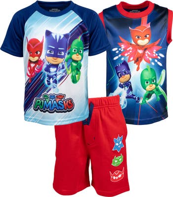 Join Amaya, Greg and Connor as they transform into Owlette, Gekko and Catboy at night to form the superhero team PJ Masks! Your little one is ready for a superhero adventure in this PJ Masks Short Sleeve Graphic T-Shirt & Tank Top Shirt & Shorts. Your little hero will love wearing this 3 piece mix n' match clothing set: short sleeve graphic tee shirt, sleeveless tank top, and shorts featuring their favorite animated characters so much, they will always want to wear it.