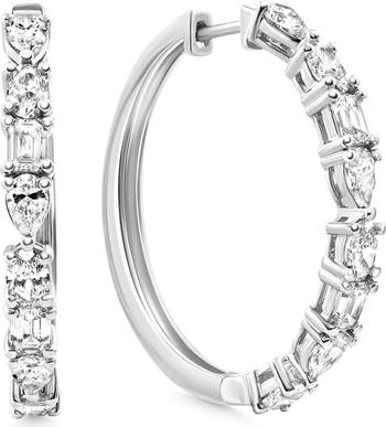 4.34 Ct Multi Fancy Shape Diamond Hoops 14k Gold Lab Grown Women's Earrings