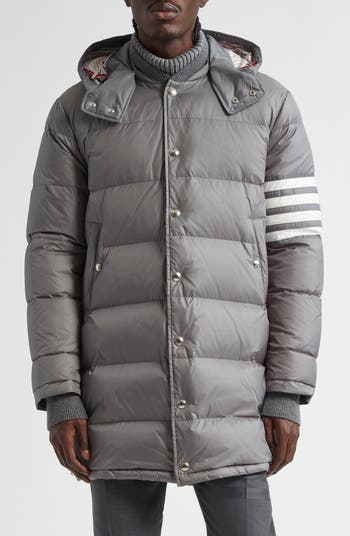 Signature 4-Bars signal that even a utility coat can be a statement piece, and this Italian-made hooded style gets the fashion and function balance just right with it's muted RWB-striped lining, cozy wool-blend rib collar and plush, warming down fill.