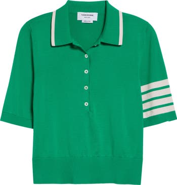 In celebration of the dashing dachshund’s tenth year as a brand icon, an intarsia-knit Hector is posed at the back of this short-sleeve polo accented with Browne's signature 4-Bar motif at one sleeve.
