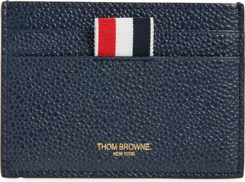 House-signature 4-Bar stripes and a tricolor grosgrain loop put the label's unmistakable stamp on this card case made of richly grained leather.