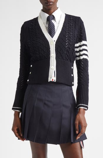 4-Bar Pointelle Cable Virgin Wool Cardigan