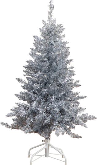 Reminisce on the days of yesteryear where groovy was in and Christmas was en vogue. This artificial silver Christmas tree captures the nostalgic charm of mid-century holiday decor while adding a contemporary cool white LED glow for a modern celebration. Crafted from high-quality materials, the silver finish adds glamour with a vintage twist that complements many decor styles. Pre-strung with 130 cool white LED lights nestled among the tinsel branches, feel the nostalgic radiate your space. Standing 4-Ft from a sturdy stand, create conversation during the holidays. Great for apartments, small spaces, or as secondary trees in larger homes.