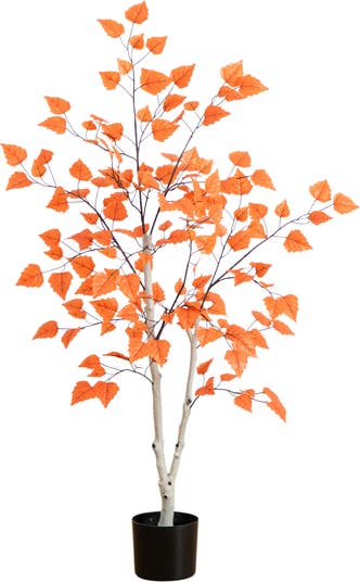 Faux in love with fall. Remind yourself of the most spectacular foliage in the world with this autumn paper birch artificial fall tree. Inspired by the Northeast's landscape, bring the fall foliage home by injecting vivid colors into your space with these lifelike birch leaves assembled from high-quality materials, feel free to bend the branches. Standing 4-Ft from a nursery planter, house in any compact area. Perfect for Thanksgiving, living rooms or a fall-inspired room.