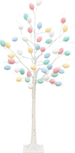 Easter decorating is made easy with this 4-Ft pre-lit Easter artificial twig tree with egg-shaped ornaments and LED lights. Inspired by woodsy, birch trees, the egg crackle finish in soft pastel colors add a playful, whimsical touch. Style it in a kids room, living room, or entryway and let it bring a little hoppiness to your everyday. Great for Easter brunch and beyond, shape the branches for a custom look.