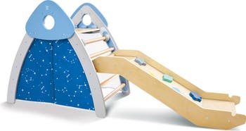 The 4-in-1 play set will keep your child busy moving with an out-of-this-world play tent, slide and climbing gym. The slide can be made smooth for quick descents before being turned into a fun climbing wall. A star-themed design helps encourage your child's imagination, while different climbing activities promote balance, concentration and hand-foot coordination. The set is safe for use indoors and outdoors.