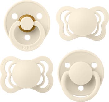 Soothe little ones with these Danish-made pacifiers that are easy to clean and made with a food-grade rubber latex nipple and a shield design made to prevent irritation and moisture build up. Each set includes four distinct shapes for baby to try out.