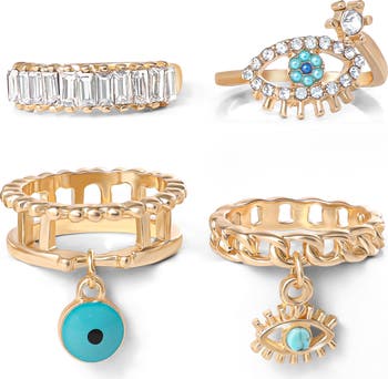 - Set of 4 Rings: Includes four distinct rings with unique designs and charm details.