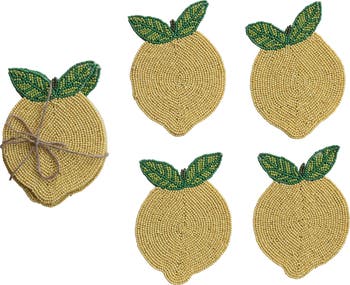 - An adorable set of lemon-shaped coasters adorned with yellow and green glass beads
