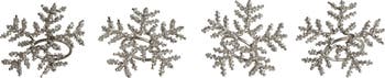 4-Piece Metal and Glass Beaded Snowflake Napkin Rings, Silver Finish