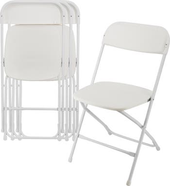 Never worry about having enough seating. The Elama 4 Piece Plastic Folding Chair in Black are easily fold-able and stack taking little storage space. The plastic construction makes these easy to clean up and maintain so you can use them for a number of events from family dinners to arts and crafts night. Features rubber ended non skid feet, adding an extra layer of protection for your floors.