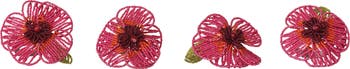 - An exquisite set of handmade glass beaded flower napkin rings in vibrant pink, orange, and green hues