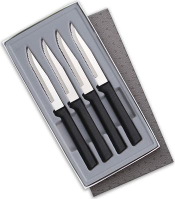- Includes four 4.8" finely serrated steak knives