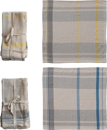 4-Piece Square Woven Cotton Plaid Napkins, 2 Colors